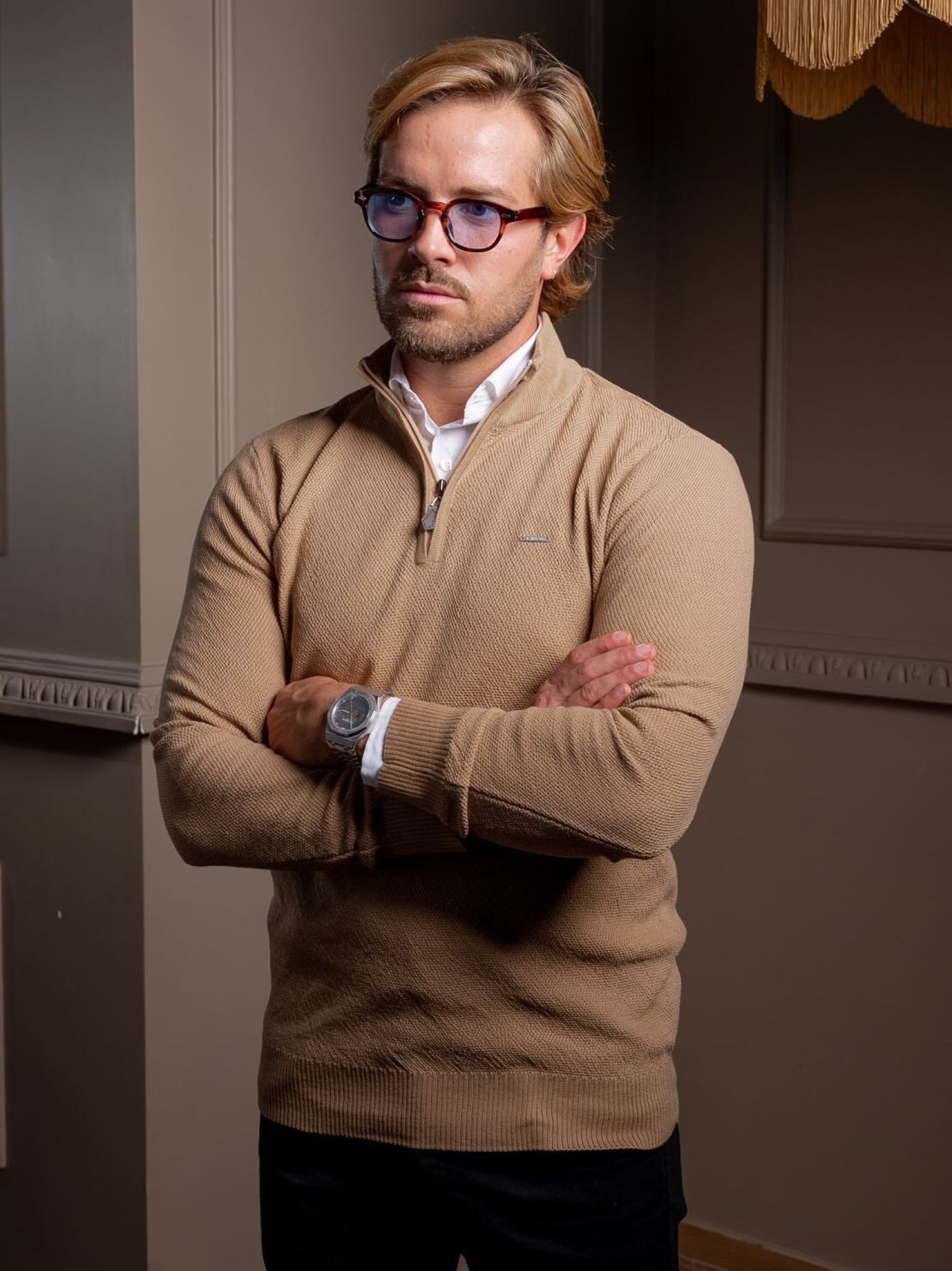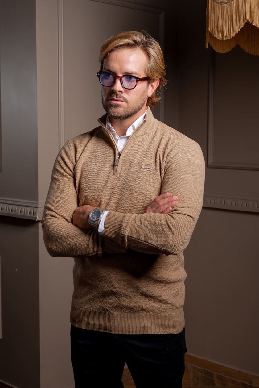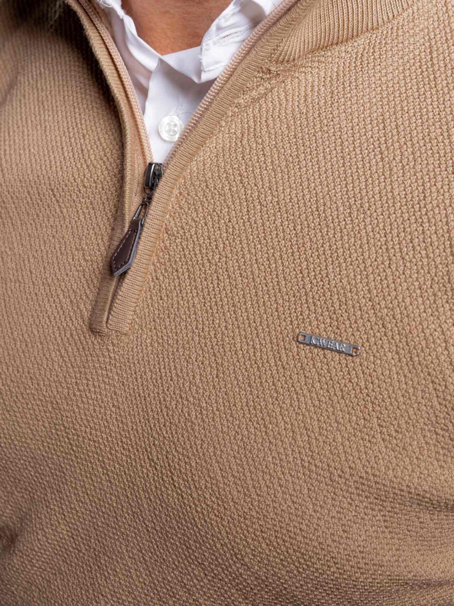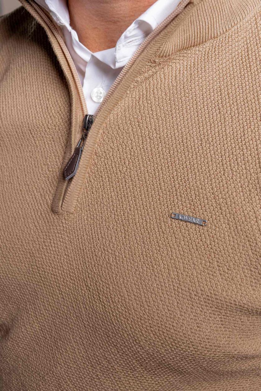 CAMISOLA MALHA TRABALHADA C/FECHO CAMEL