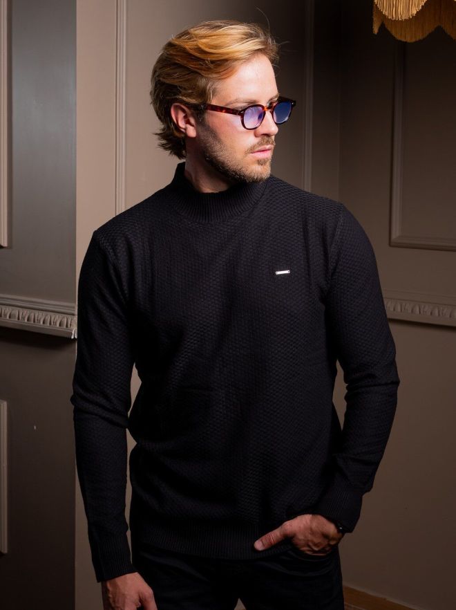 CAMISOLA MALHA TRABALHADA C/FECHO PRETA