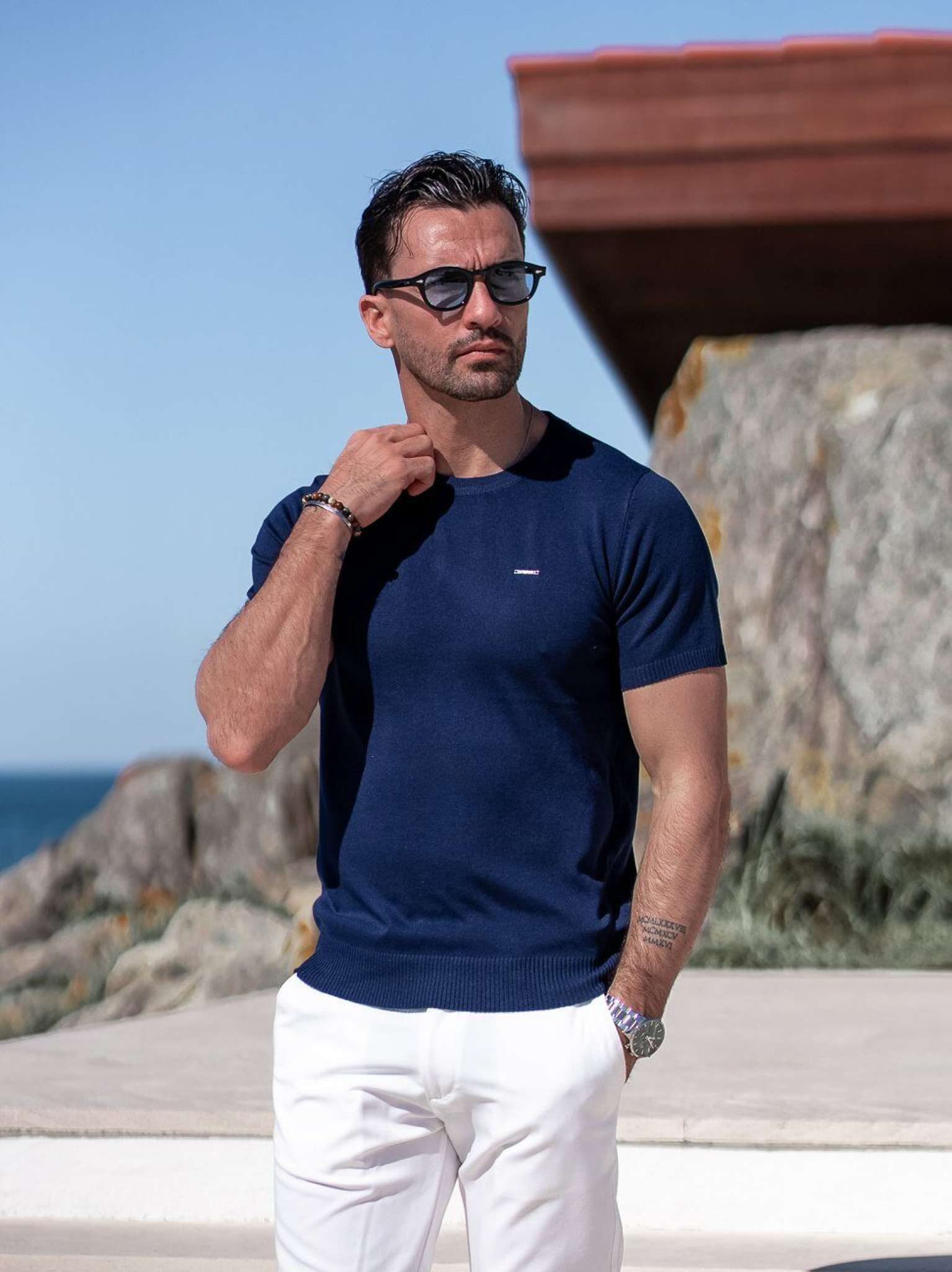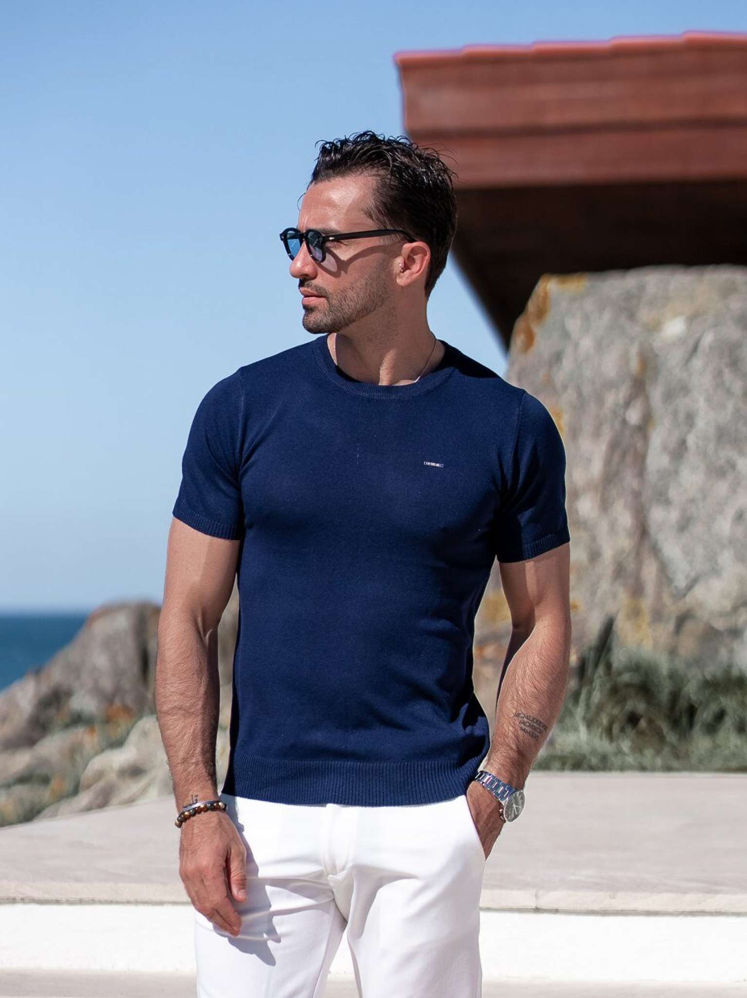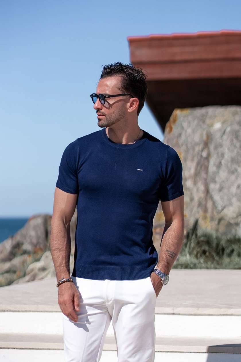 T-SHIRT MALHA AZUL MARINHO